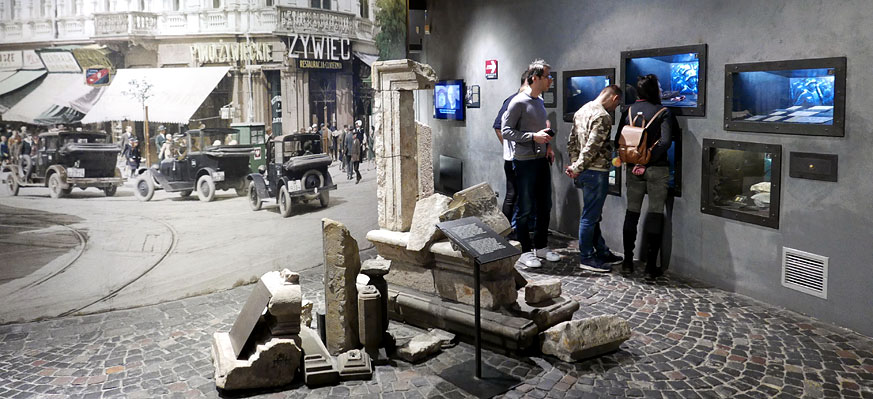 Das moderne, narrative Museum ist keine Sammlung von Exponaten, sondern eine Erfahrung von Geschichte. Die Besucher bewegen sich durch die Straßen der kämpfenden Stadt, durchlaufen die einzelnen Phasen des Aufstands, und die interaktive Ausstellung spricht alle Sinne an.