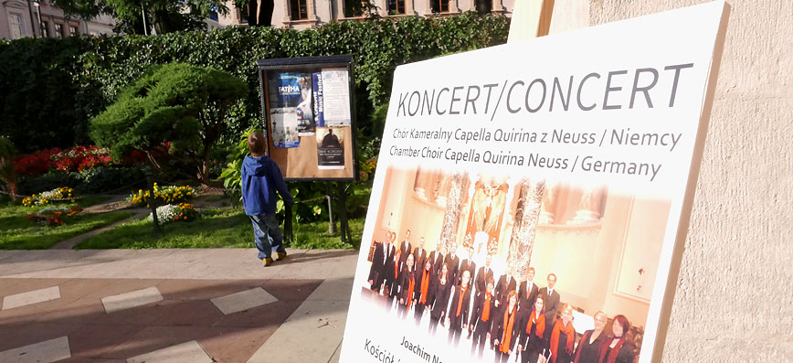 Unsere langjährige, persönliche Verbindung zum Kulturmanagement in Krakau und unsere Kenntnis der Kulturszene ermöglichen es Ihrem Chor/Orchester, im richtigen Umfeld aufzutreten. Wir bieten Ihnen einen Komplettservice an und organisieren für Sie sowohl Konzerte und andere Auftritte als auch ein touristisches Programm Ihrer Chorreise nach Krakau.